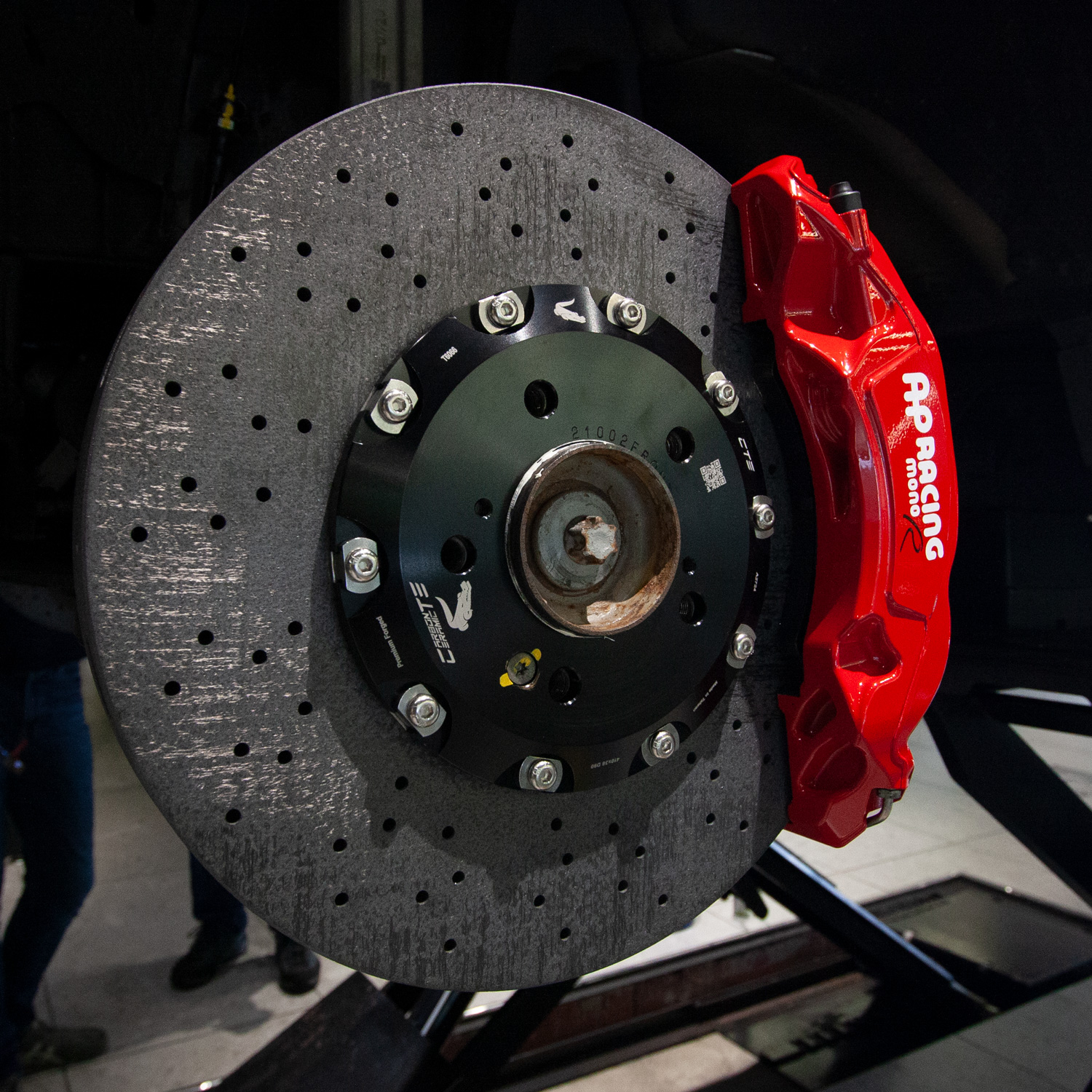 Maximize Existing Assets: There is no need to discard your high-performance AP Racing calipers. Through precision engineering and custom-designed center hats (bells), we seamlessly replace your heavy steel rotors with lightweight Carbon Ceramic discs.