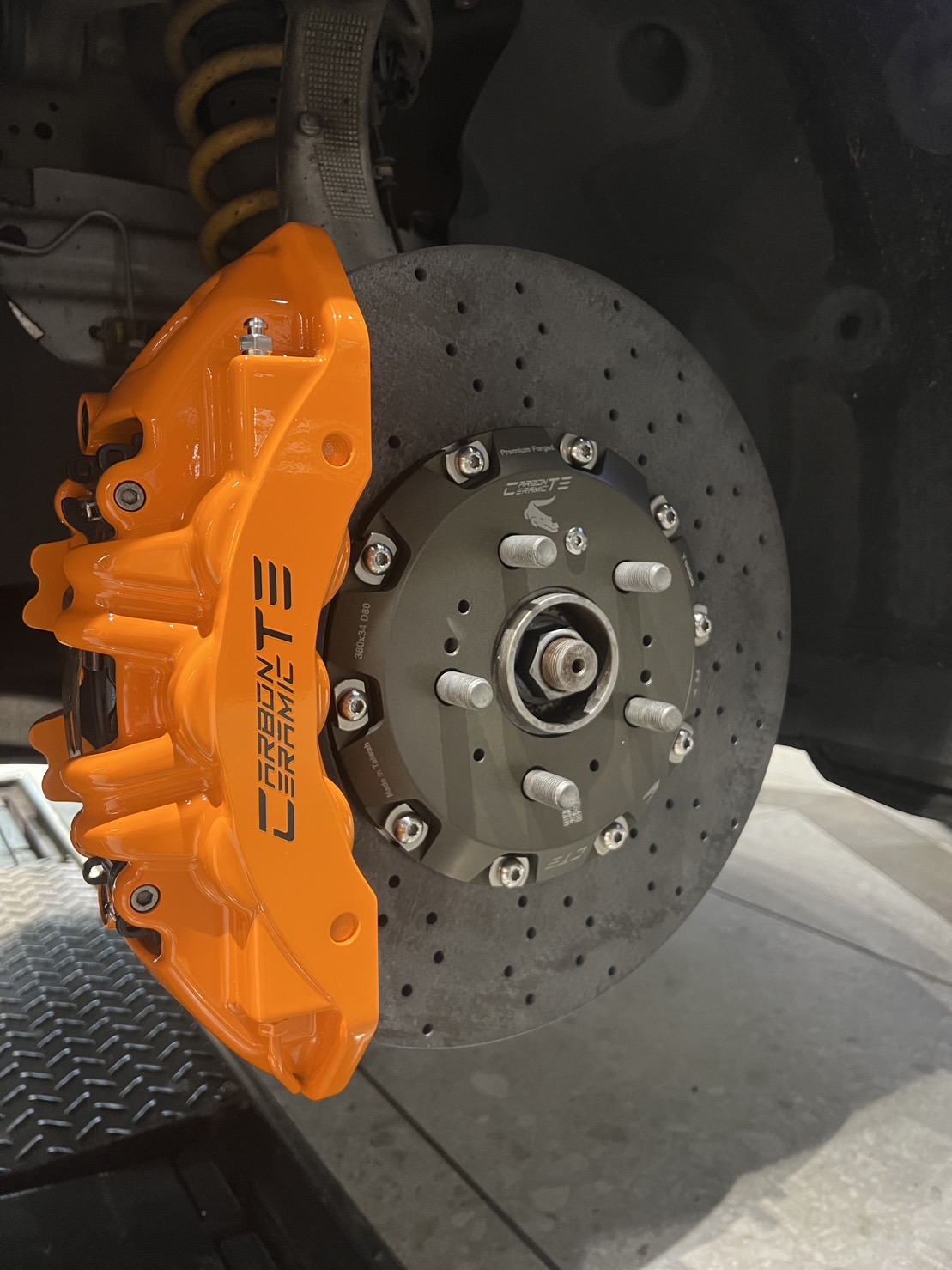 - The Advantage: The 380mm CTE RACING CCM discs are significantly lighter than the factory steel rotors, reducing unsprung mass at every corner.